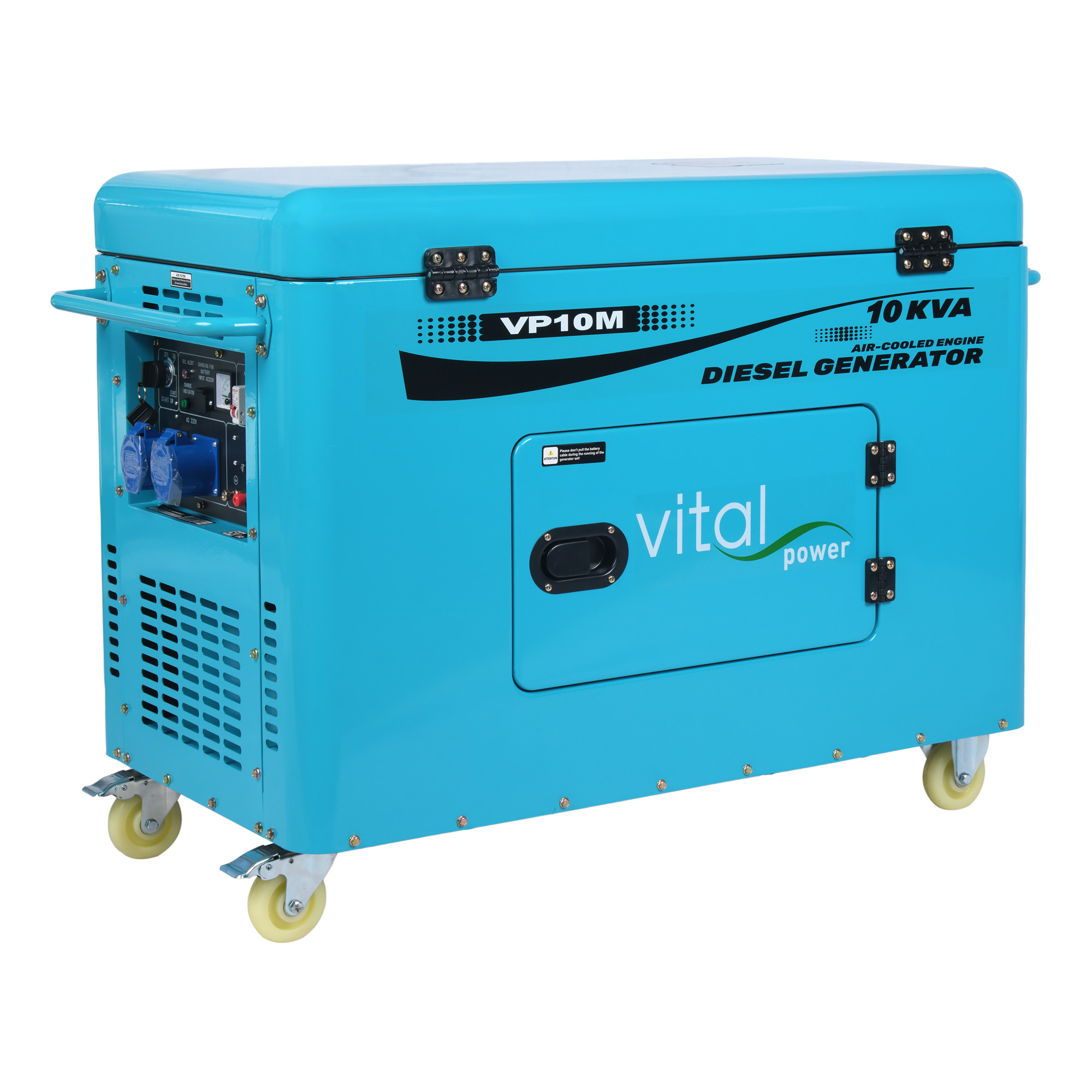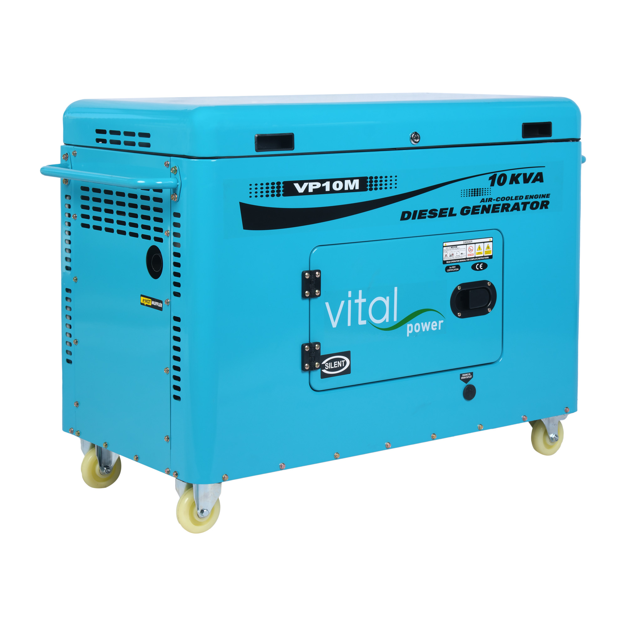 With a power output of 10 kVA, our VP10M model now delivers its technically proven performance in a more modern and ergonomic design. It ensures maximum quiet operation with low decibel levels, offers superior mobility thanks to its portable structure and practical wheels, and blends seamlessly into any environment with its new design. Quiet, lightweight, and powerful—an energy solution you can rely on with its brand-new look.