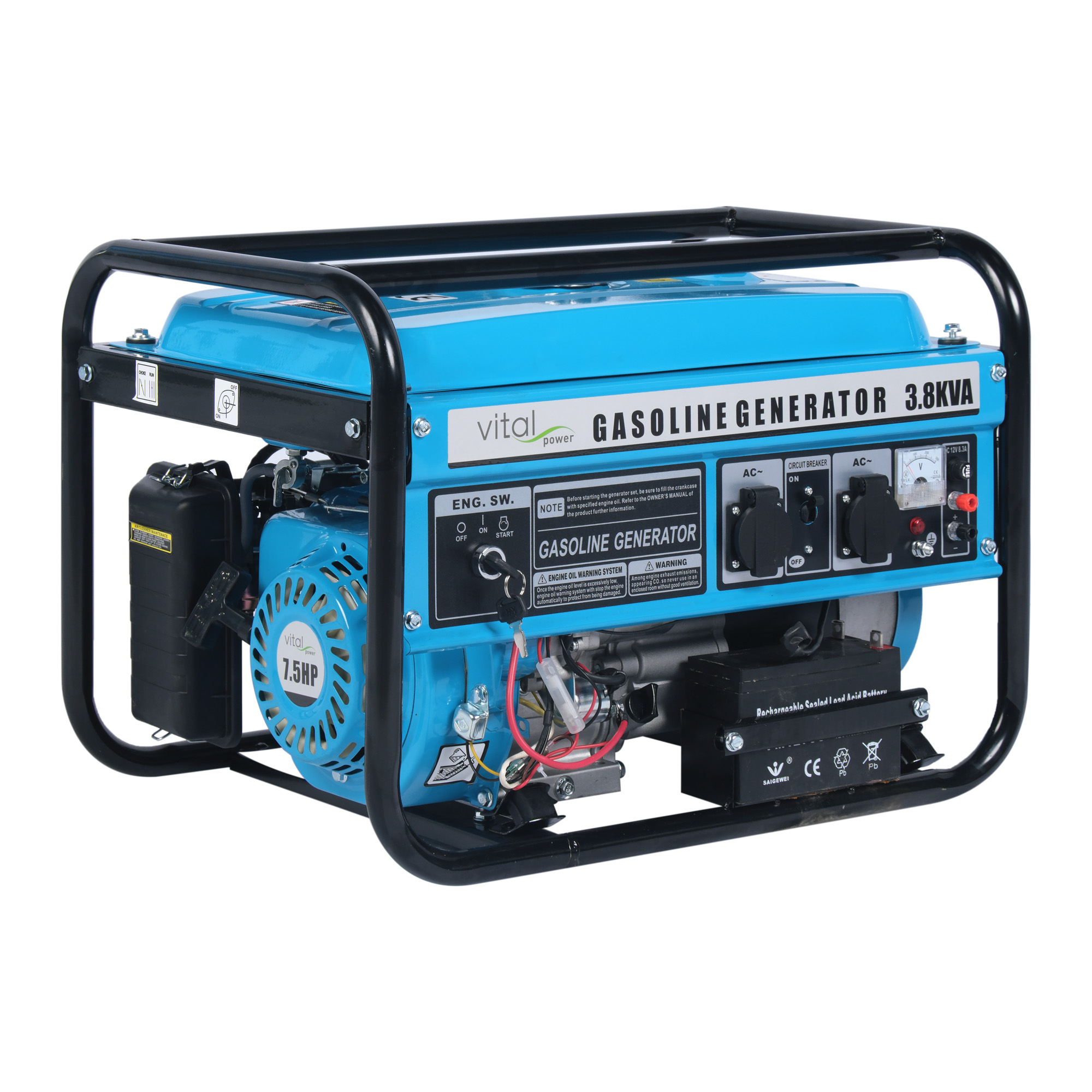 With a power output of 3.8 kVA, our VP3.8M model is always by your side whenever you need it, thanks to its gasoline engine and ultra-lightweight design. Its compact structure allows it to be easily transported in your vehicle or carried by hand. It offers a powerful and practical solution for camping, picnics, small construction sites, and emergency power needs.