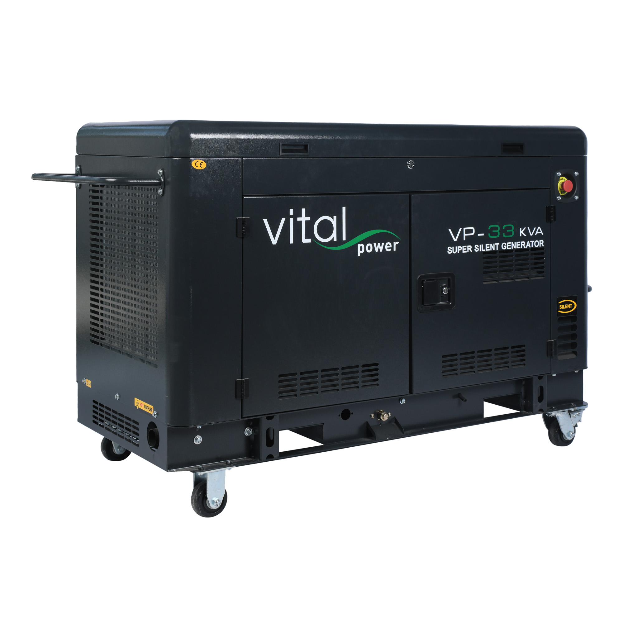 With a power output of 33 kVA, our VP33TW model is a high-end generator developed for professional applications. Thanks to its Smartgen automatic control panel, it instantly detects power outages and automatically starts up to provide uninterrupted power. Featuring an advanced sound-insulated enclosure, it operates quietly at low decibel levels, while its practical wheeled design allows for easy positioning.